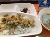 9月24日火曜日の献立 大豆入りキーマカレーライス(米粉) グリーンサラダ ノ...