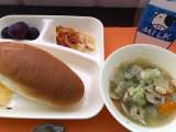 9月25日水曜日の献立 コッペパン 鶏肉とてぼ豆のスープ煮 じゃがいもとトマト...