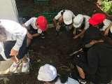 1学期から育ててきたサツマイモの収穫をしました。手で優しく掘り出すと、サツマイ...