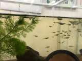ふくふく広場の田んぼに放していたメダカが卵を産み、たくさんのメダカの赤ちゃんが...