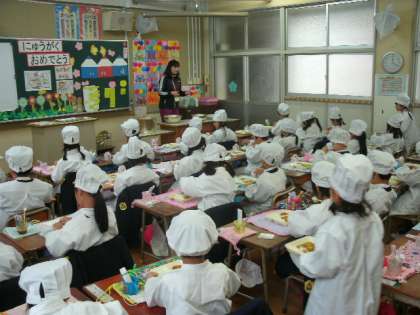 1年生の給食の様子です。みんなとってもお行儀がいいです。