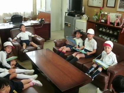 校長室のソファーで一休み。