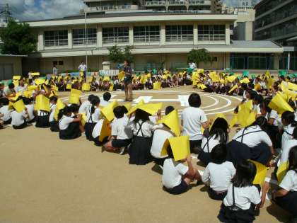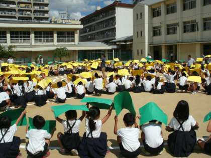 雨天のためにのびていた航空写真を、13日に撮りました。天気も良く、きれいに撮れました。写真の一部は下敷きにして、140周年式典で全児童に配る予定です。