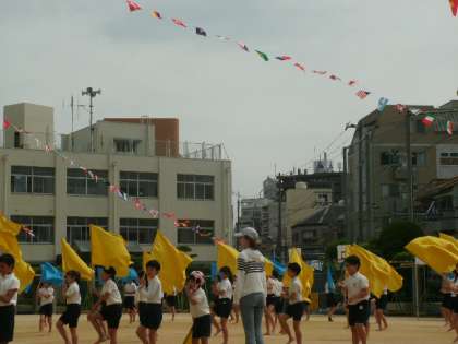 新しくなった万国旗の取り付けが終わりました。