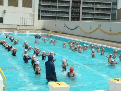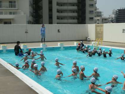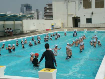 絶好のプール日和です。カニになったり、イルカになったり、ロケットになったり。
