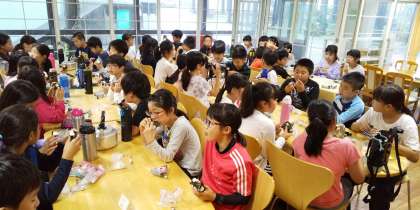 朝食の時間です。ウメにカツオ。残さずにいただきましょう。