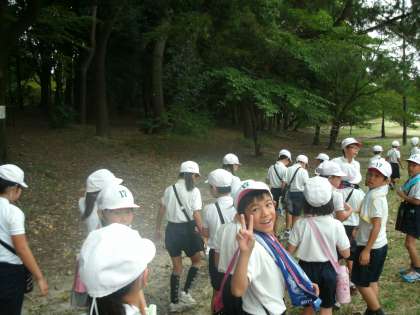 10月3日(金)服部緑地公園へ全校遠足に行ってきました。公園内では、6年生がリーダーとなり、縦割り班でオリエンテーリングを楽しみました。幸い雨にもあわずに、帰ってくることができました。