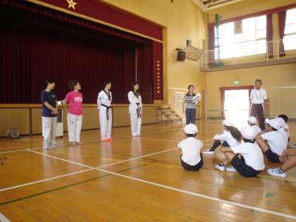6年生が、テコンドーの先生方から、実技指導を受けました。