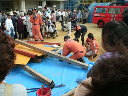 炊き出しや、地震体験、倒壊建物からのけが人の救出などを実際に行いました。