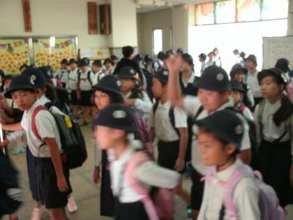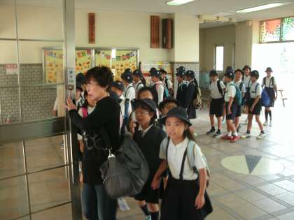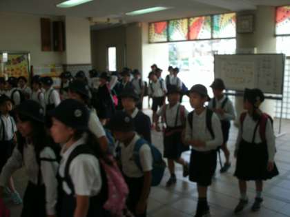 午前8時30分過ぎに、4年生が阿倍野防災センターに出発しました。