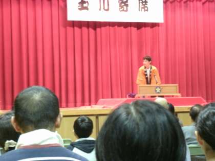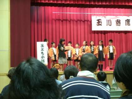10月18日(土)玉川小学校講堂に、3名の噺家さんに来ていただき、「玉川寄席」が行われました。玉川小学校児童9名が、前座で子ども小噺をしました。みんな緊張していましたが、上手に演じ会場から大きな拍手をいただきました。