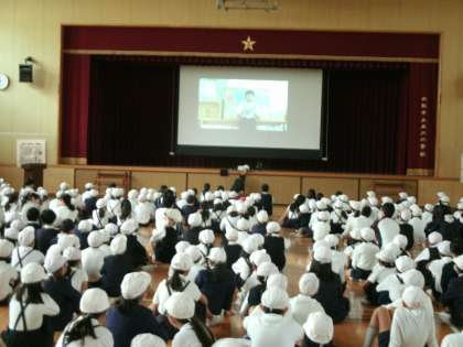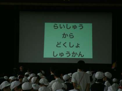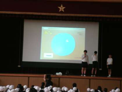 今日は、図書委員会の発表がありました。図書館の本の展示の仕方の説明や絵本についてのクイズがありました。