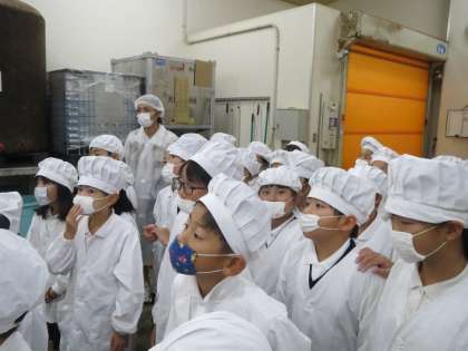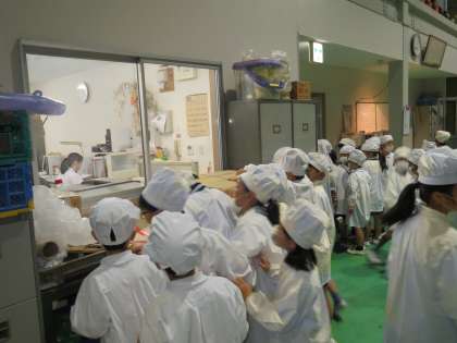 大きなタンクが所狭しとならぶ中、クラスごとに分かれた子ども達は、熱心にメモをとりながら見学していました。