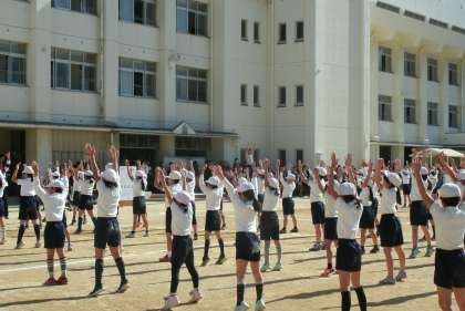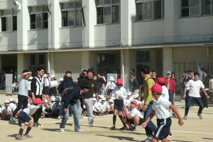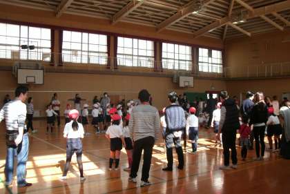 2〜5年生は、『ドッジビー』をしました。2年生は体育館で、3〜5年生は運動場で行いました。