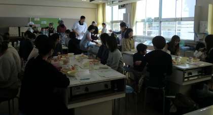 11月21日(木) 家庭科室では、PTA保護者・未就学児とその保護者・幼保こ園の先生方を対象とした『PTA給食試食会』を開催しました。