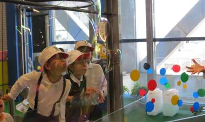 職業体験のブースやシャボン玉づくり、不思議な動きをするパネルの前など、子ども達の関心はあちこちに広がり、お昼のお弁当の時間が終わっても楽しんでいました♪