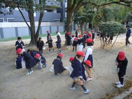 11月29日(金) 1年生は生活科の単元である秋を探すため、近くの下福島グランドに出かけました。