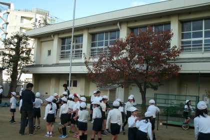 校庭の桜が、色づいています。穏やかな晴れの日になりました。