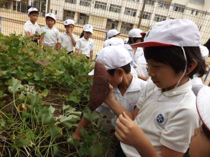 2年生が生活科で育てたサツマイモを収穫しました。