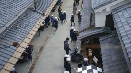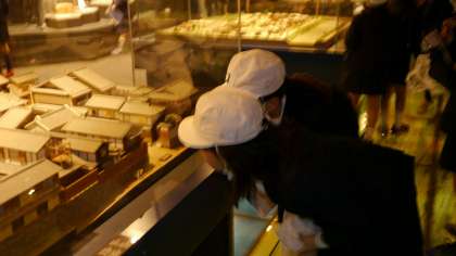 館内では、昔の街並みや生活用具などを再現した通りを歩きながら学びます。