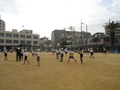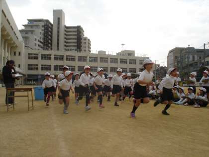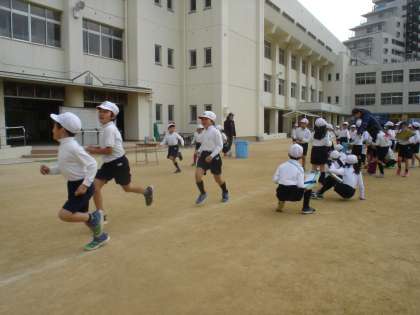 1月20日(月) 運動場では、1年生が『玉川パークラン』に合わせて練習をしていました。