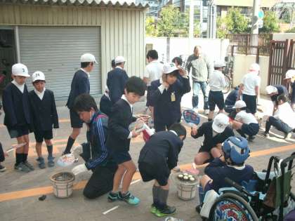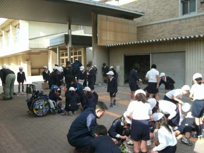 3年生が、七輪体験をしました。七輪でおもちを焼きました。