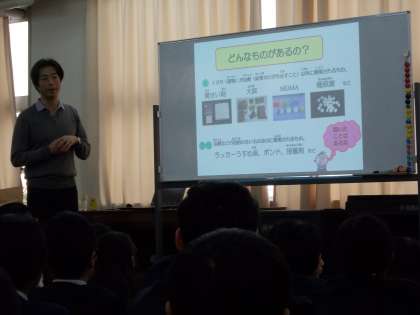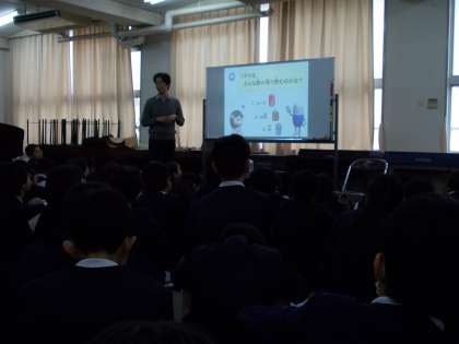 学校薬剤師の別府先生にお越しいただき、薬の正しい使い方や薬物乱用について授業をしていただきました。