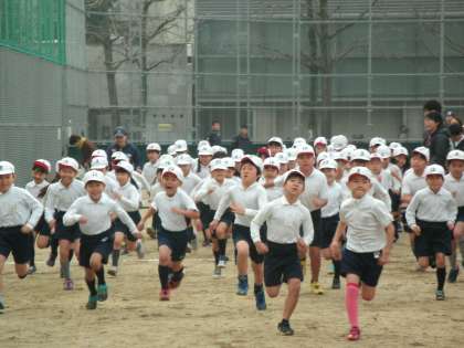 下福島グラウンドで、全校児童が、最後まで走り切ることができました。よく頑張れていました。