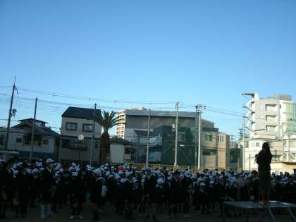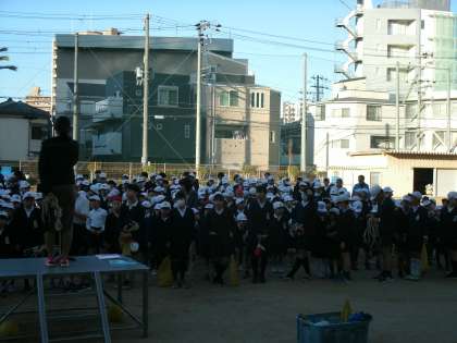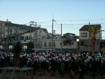 晴天のもと、生活班による『おはようなわとび』が始まりました。