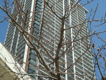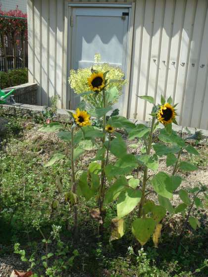 花壇に向日葵が咲いています。桜の開花まではあと少しです。