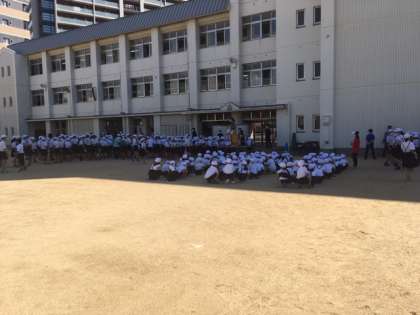 今日は、全員が運動場に並び、初めてみんなの姿を一堂に見ました。