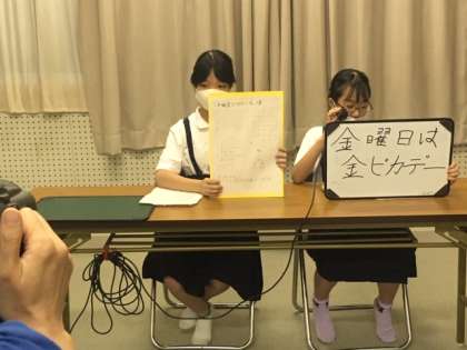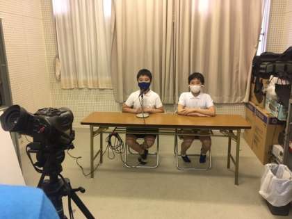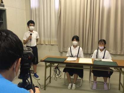 例年は、体育館で各委員会の報告や発表を行います。しかし、今年は、放送室からテレビカメラを使って行います。今日は、環境委員会と代表委員会の発表でした。