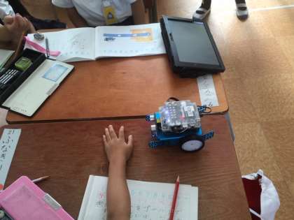 1年生がタブレットに簡単なプログラムを組んで、m−botを動かしてみました。
