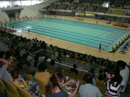 7月30日(火)なみはやドームで、第60回学童泳力記録会が行われました。大阪市の児童が対象で、本校からは1〜6年生34名が参加しました。みんな、50メートルの大きなプールを、元気よく泳ぎ切りました。