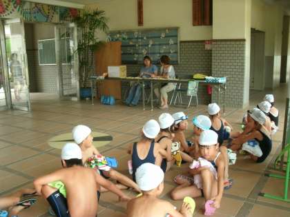 7月31日(水) 7月22日〜8月2日の間、夏季プール指導を行っています。受け付けは、PTAの方に、ボランティアとして手伝っていただいています。ご協力、本当にありがとうございます。今日は、低学年のプール指導中に、激しい雨に見舞われ中止になりました。残り2日間、どうか晴れますように。