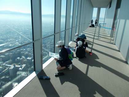 学習シートに展望台の東西南北を見て見えるものを書き込みました。天気も良く遠くまできれいに見ることができました。