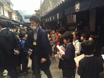 江戸時代のいろんな道具を見たり再現された街並みをみたり社会科の体験学習をしました。江戸時代の丁稚さんと御料人(ごりょん)さんの衣装を各クラス男女1名ずつが着て館内を見学しました。湯本先生も旦那さんの衣装を身に着けました。