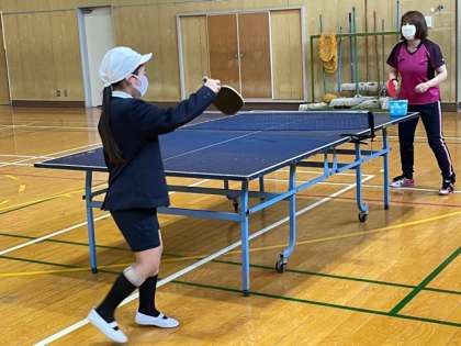 朝から雨の降る中、体力増進のための出前授業として卓球の世界大会で活躍された選手の方々が、来校されました。