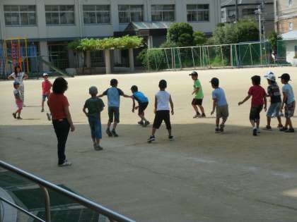 8月19日(月) いきいき活動中に、子どもたちが、校舎の陰でドッジボールをしていました。やっぱり、学校には子どもたちの歓声が必要ですね。こちらまで、ウキウキしてきます。あと夏休みも10日余り、みんなの元気な顔を見るのを、楽しみにしています。