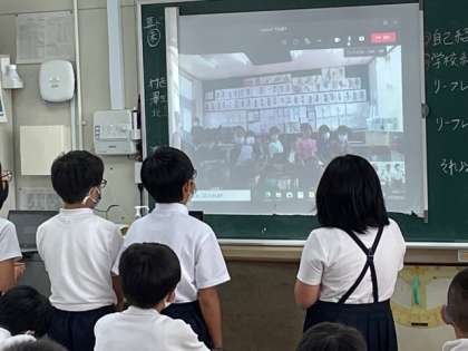 遠く離れた学校同士が映像を通じて互いの顔を見ながらの交流会はとても充実していました。
