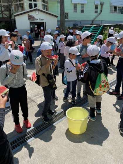 宿舎に戻ってきたら、冷た〜いあま〜いスイカが待っていました。