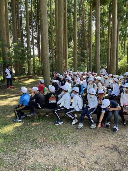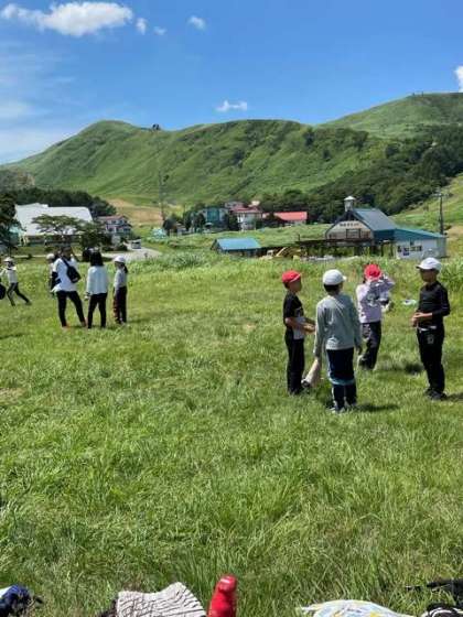 宿舎前で説明を受けて、広い広い高原でおもいっきりあそんでいます。