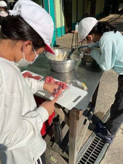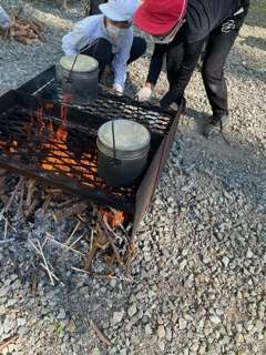?火おこしと飯盒と肉鍋に挑戦しています。果たして美味しい夕食にありつけるでしょうか?
