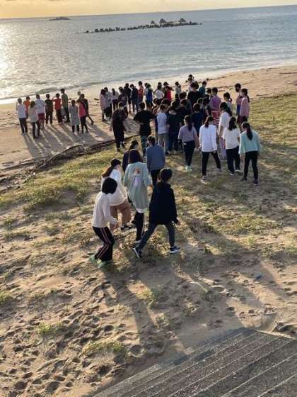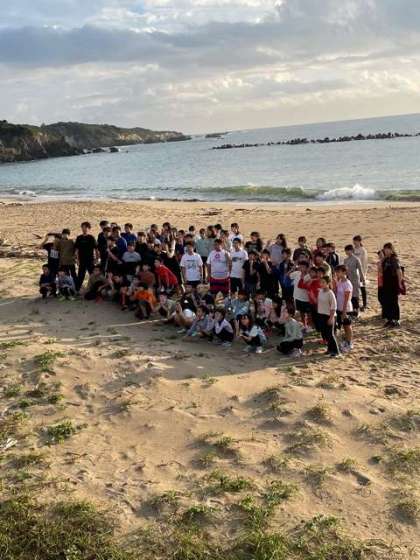 学年全員で集合写真を撮った後、海岸べりで遊びました。