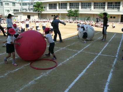 5月27日(水)今日は、全体練習がありました。紅白の応援合戦と大玉ころがしの練習をしました。