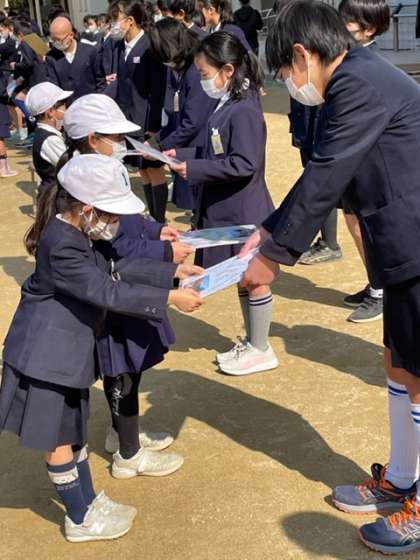 前半は、各学年の出し物をテレビで視聴し、後半は、運動場で行いました。6年生のみなさんありがとう、そして頑張ってください。