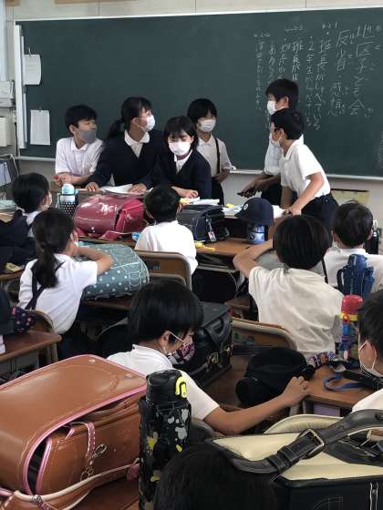 各班の班長を中心にして、話し合い活動を進めました。本年度初めての地区子ども会なので、最初にすべてのメンバー間で自己紹介を行い、そのあと集合時刻や出発時刻について話し合いました。各班の班長が上手にリーダーシップを発揮してくれるので、低・中学年の児童からも積極的な挙手が見られました。
