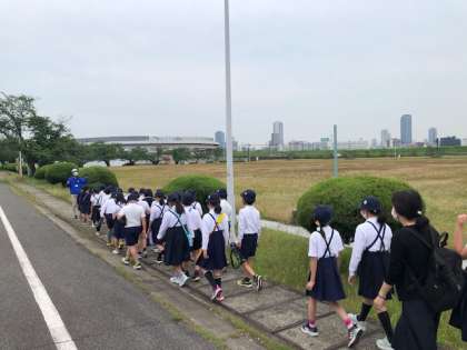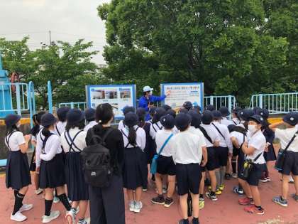 配水池を見学しながら、凝集沈殿池まで案内していただきました。