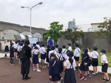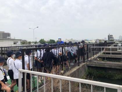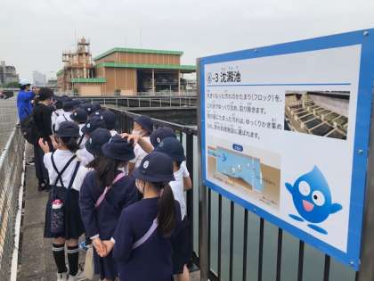 沈殿池からオゾン接触池を見学しながら、説明を聞きました。
