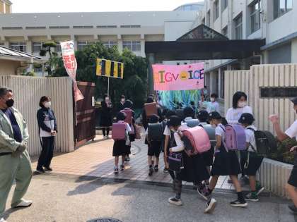 玉川小学校の児童の登校は、全体的にとても早い時間に登校が完了しますが、今朝(5月18日(水))はいつも以上に早く、元気にあいさつが交わされていました。